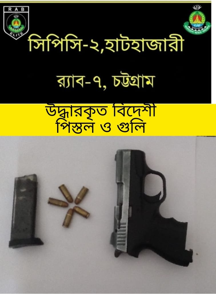 রাউজানে বিদেশি পিস্তল ও গুলিসহ ‘রইশ্যা ডাকাত’ গ্রেফতার, র্যাব-৭ এর অভিযান
