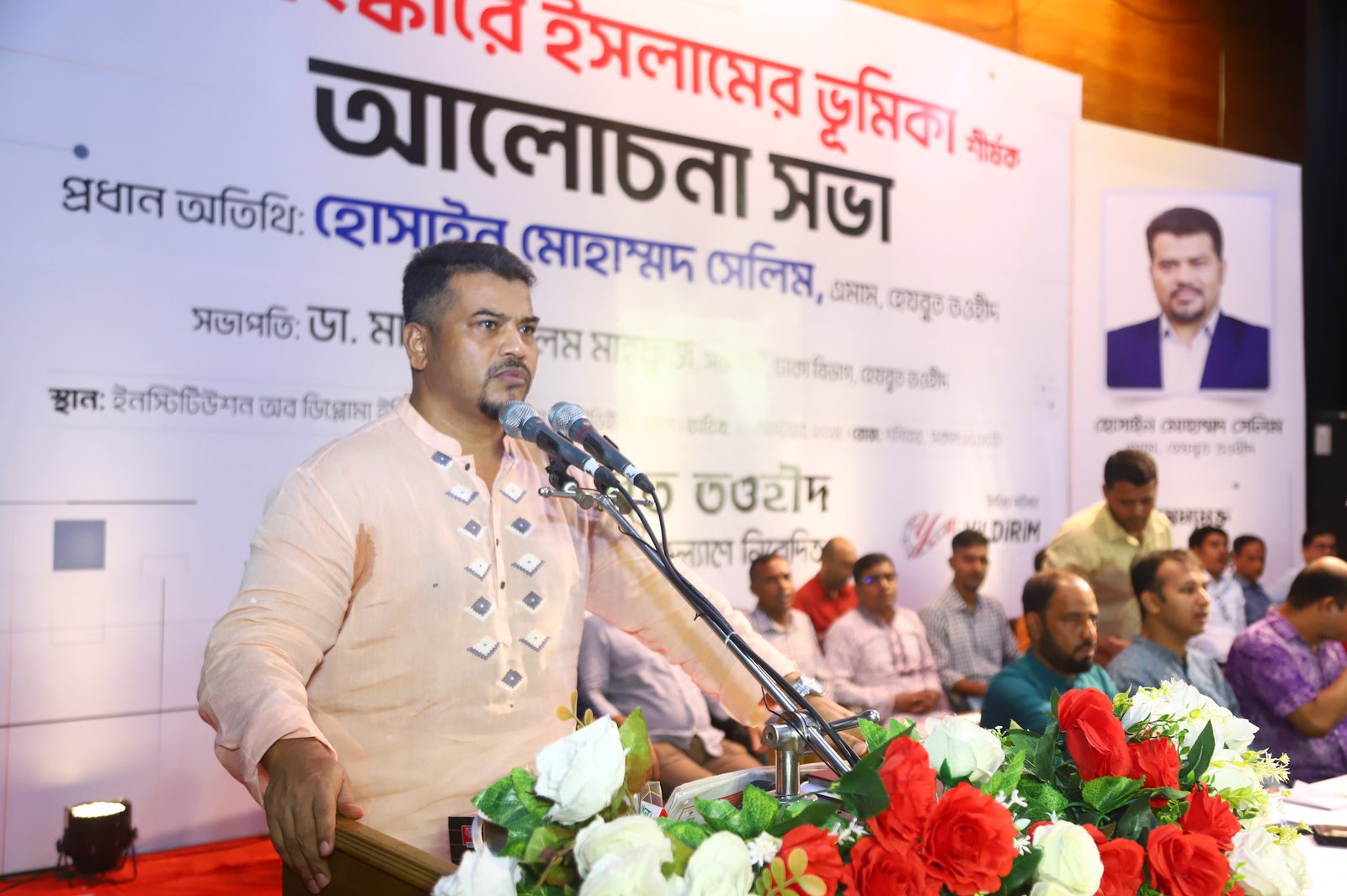 ইসলামি দলগুলোর প্রতি প্রশ্ন রেখে হোসাইন মোহাম্মদ সেলিম বলেন, আপনারা কি সবাই ঐক্যবদ্ধ হয়ে সরকারকে প্রস্তাব দিয়েছেন যে, মাননীয় সরকার গণতন্ত্র, সমাজতন্ত্র নয়, যে সিস্টেমে রাষ্ট্র চলছে এই সিস্টেম নয় আল্লার বিধান মেনে নিন আপনাদের আমাদের সম্পর্ক হবে ভাই ভাই। আমরা আর মারামারি করব না, আল্লাহর বিধান দিয়ে রাষ্ট্র পরিচালনা করব।