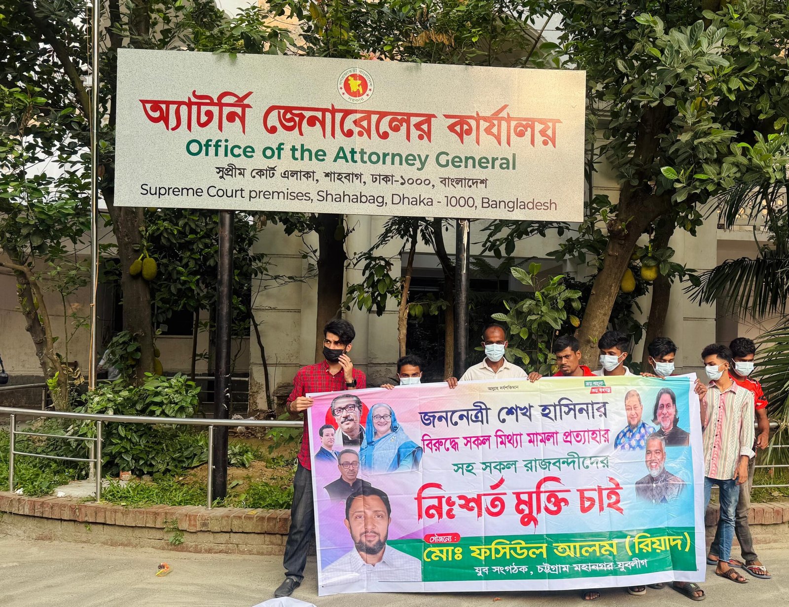 অ্যাটর্নি জেনারেলের কার্যালয়ের সামনে অবস্থান কর্মসূচি, বক্তব্য দিলেন চট্টগ্রামের যুবলীগ নেতা মোঃ ফসিউল আলম রিয়াদ